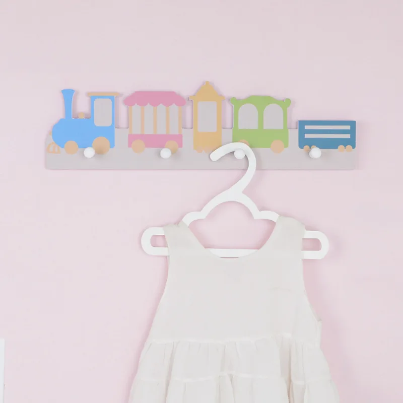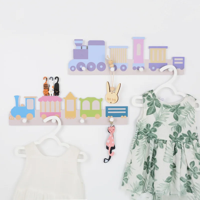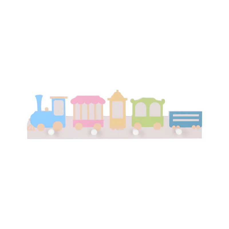 Promotion minimalist Nordic children train coat hook wall hanging wood wall key holder home storage