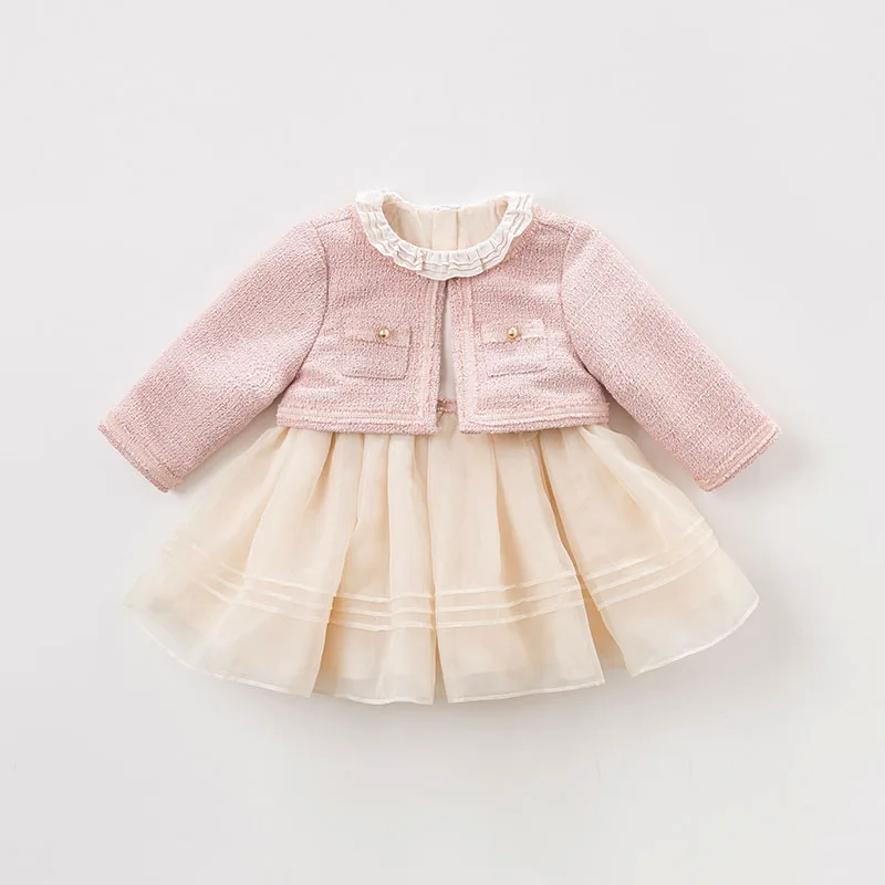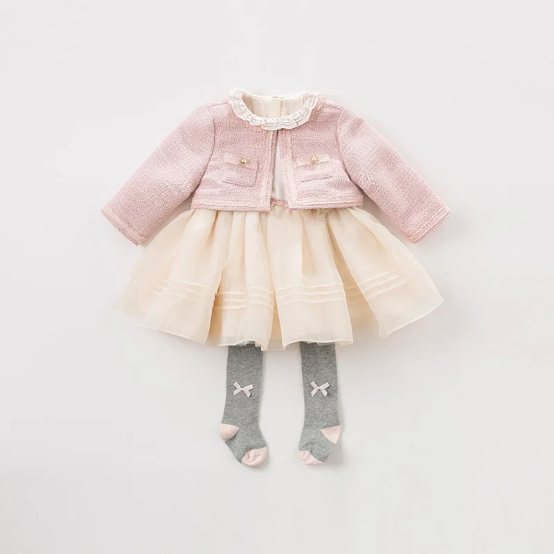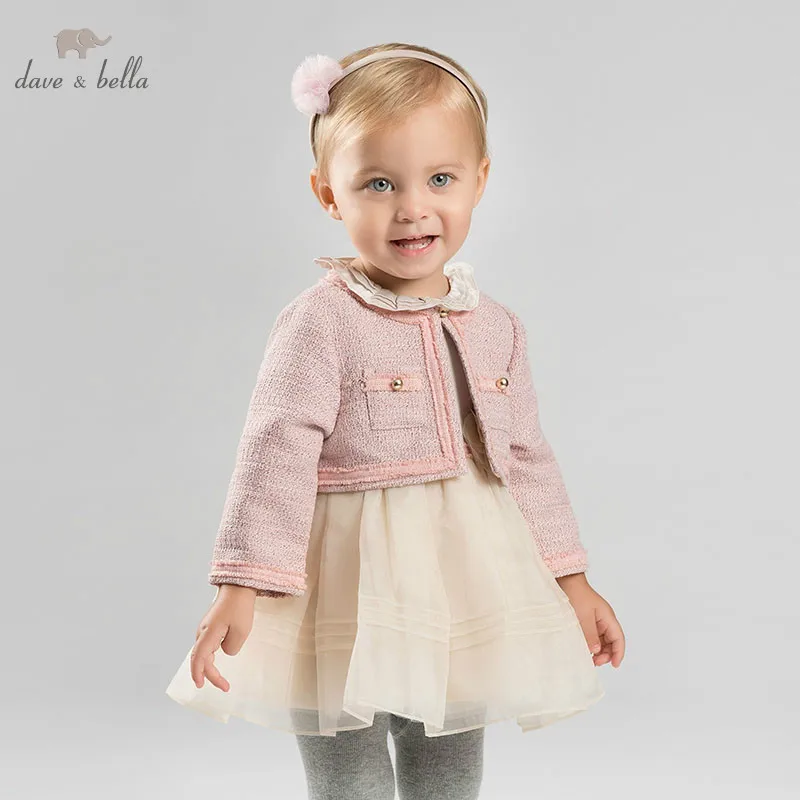 DB8898 dave bella baby girls dress Long sleeve spring dresses kids girls dress children birthday pa