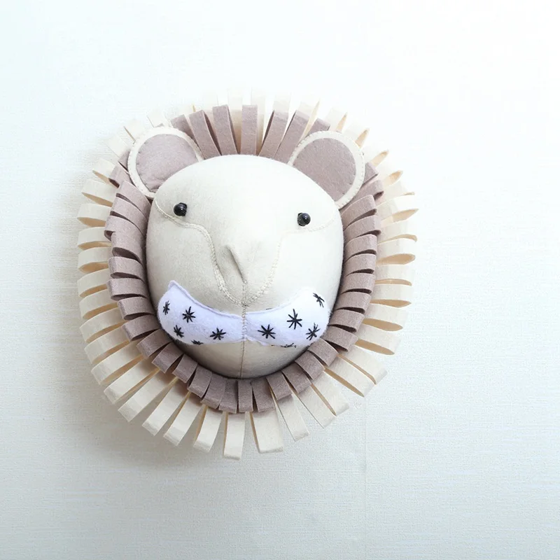 D 3D Plushed Wool Doll Animal Head Wall Decoration Wind Chimes Shark Cow Lion Stuffed Toy Kids Bedr