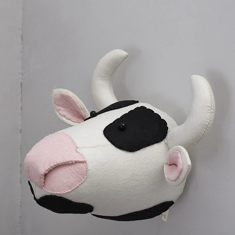 BEST D 3D Plushed Wool Doll Animal Head Wall Decoration Wind Chimes Shark Cow Lion Stuffed Toy Kids Bedr