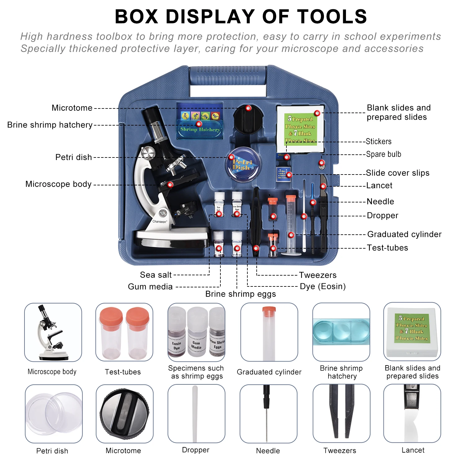 ORIGINAL 100X-1200X Kids Beginner Biological Microscope metal body with phone holder adapter Plastic Slides